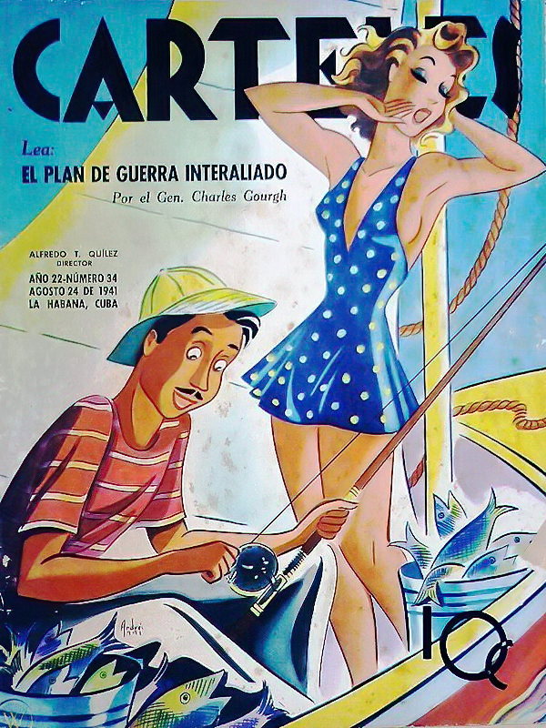 Portada de la revista Carteles. "Plan de pesca" en los mares de Cuba