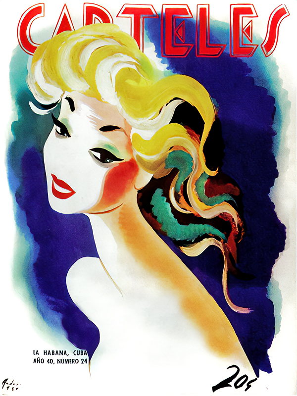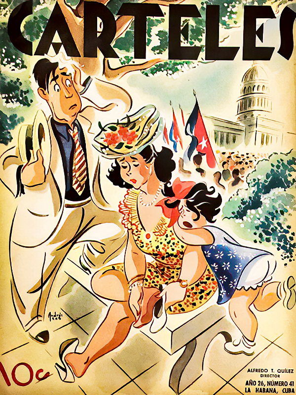 Portada de la revista Carteles. Ilustración de Andrés García Benítez. Viajes transatlánticos a Cuba
