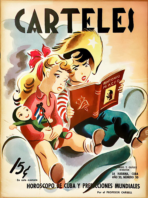 Portada de la revista Carteles. Ilustración de Andrés García Benítez. Las historias del gran Antonio Maceo emocionan hasta a los más pequeños cubanos.