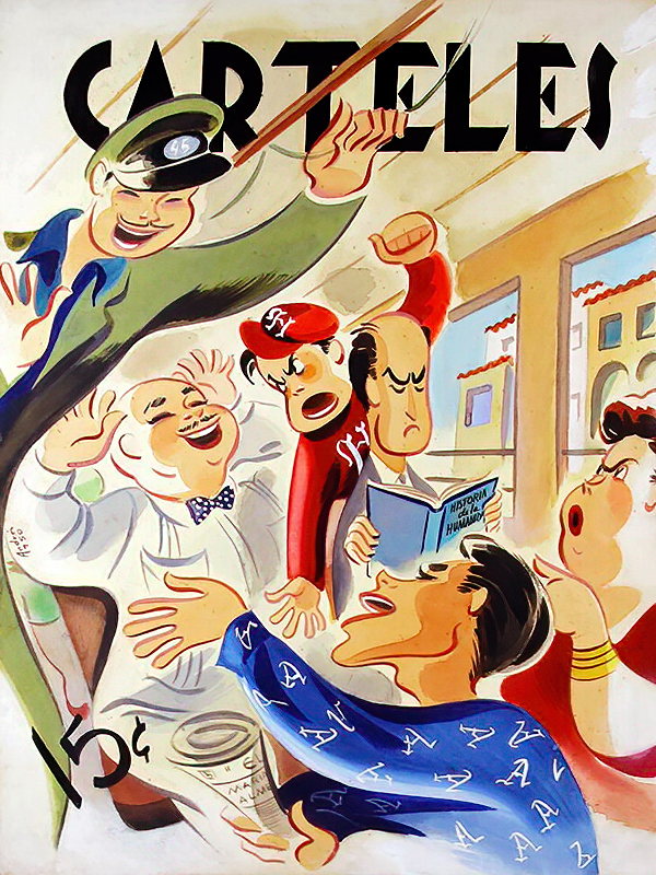 Portada de la revista Carteles. Ilustración de Andrés García Benítez. Jarana en el tranvía.
