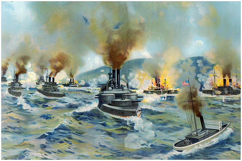 Batalla naval de Santiago de Cuba el 3 de julio de 1898 durante la guerra Hispano-norteamericana