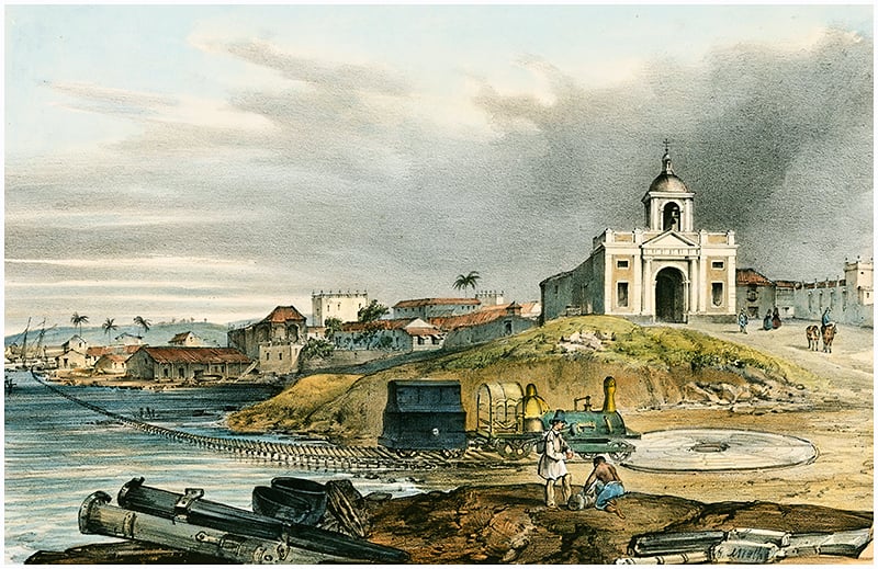 Vista de la Iglesia y del Camino de Hierro de Regla