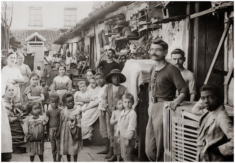 Escena de la vida cotidiana en el patio de una cuartería de La Habana
