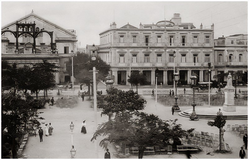 Parque Central de La Habana, con el antiguo Teatro Tacón, a la izquierda, y el Hotel Inglaterra a la derecha.
