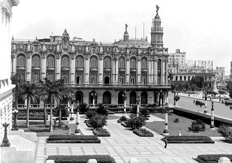 Vista del jardín del Capitolio Nacional de Cuba y del Teatro Nacional de Cuba, La Habana.