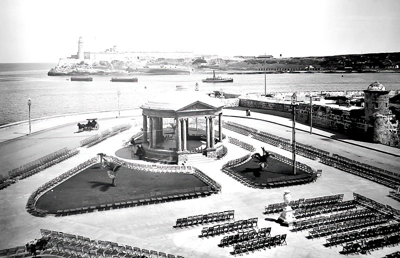 Vista de la antigua Glorieta del Malecón, frente al Castillo del Morro, La Habana.