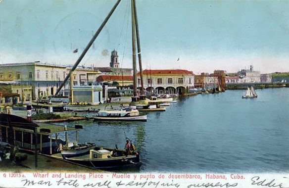 Vista de los antiguos muelles de La Habana, con la grúa llamada "La Máquina".