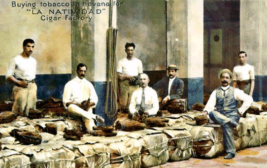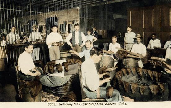Selección de hojas de tabaco en una antigua fábrica de cigarros habanos.