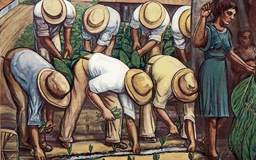 Mural alegórico de las diferentes faenas del tabaco en la isla de Cuba.