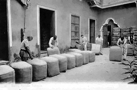 Fardos y matules de tabaco en los almacenes de la antigua fábrica de tabacos "La Natividad".