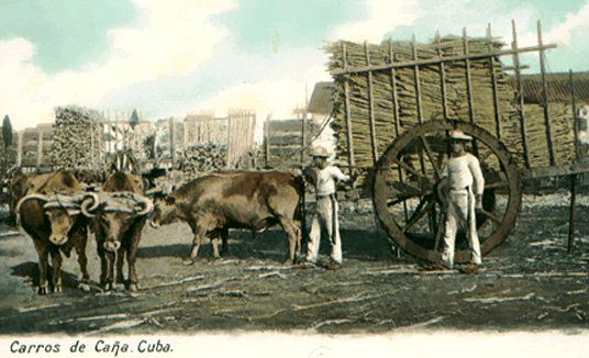 Carreteros llevando la caña de azúcar al ingenio para su molienda.