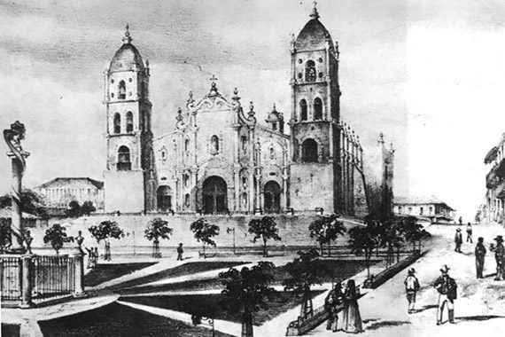 La Basílica de Nuestra Señora de la Asunción, como también se denonima a la Catedral de Santiago, tenía una apariencia neoclásica durante el siglo XIX.