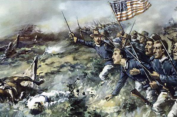 Escenas de la guerra hispano-norteamericana de 1898 en la pintura. Carga de las tropas regulares norteamericanas el 1 de julio de 1898 en la Loma de San Juan.
