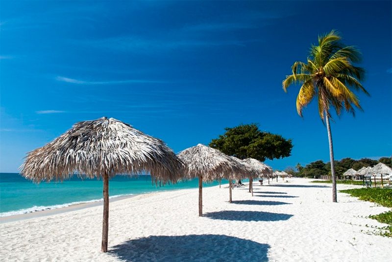 La playa de Varadero, también llamada Playa Azul, destaca por sus blancas y finas arenas, sus aguas de color azul turquesa, cálidas y transparentes todo el año.