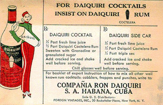 Tarjeta de propaganda de la compañía de ron Daiquiri, en La Habana.