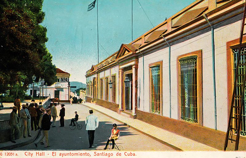 Vista del antiguo Ayuntamiento de Santiago de Cuba, en uno de los laterales del Parque Céspedes