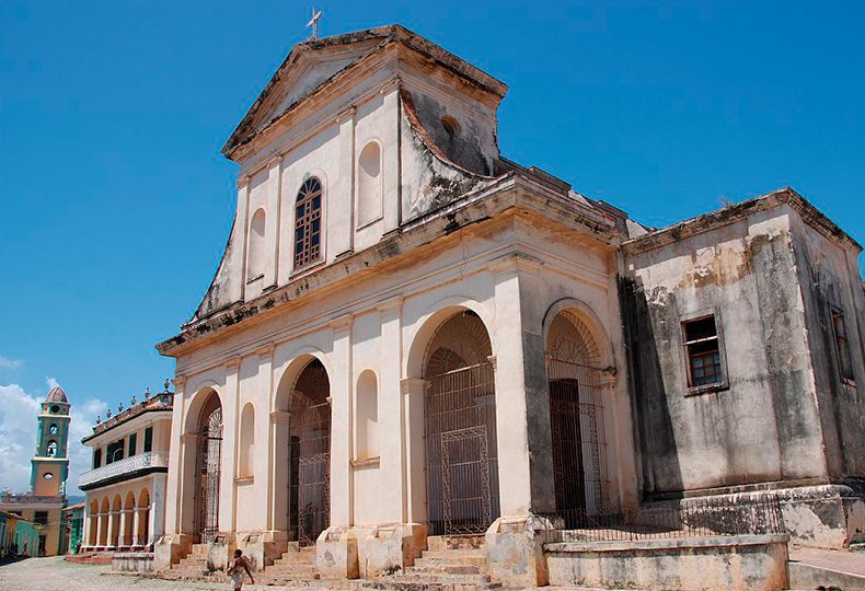 Iglesia Mayor Santísima Trinidad. Es uno de los templos mayores ubicados en territorio cubano, con torres a cada lado y un pórtico de estilo neoclásico.