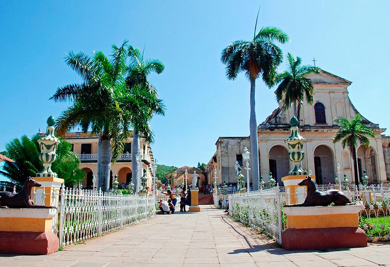 Vista de la Plaza Mayor de Trinidad, ubicada en el centro histórico de la ciudad y declarada Patrimonio de la Humanidad. Se halla rodeada de bellos edificios coloniales que pertenecían a la clase más rica de Trinidad.